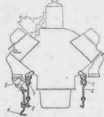 1-зливний кран; 2-рукоюдка привода зливних кранів; 3-зливний кран патрубка радіатора; 4-рукоюдка привода зливного крану патрубка радіатора